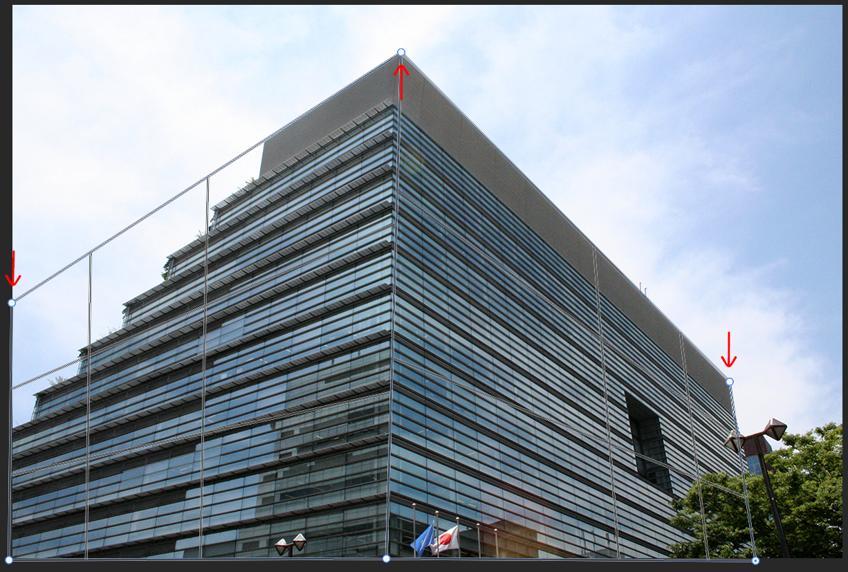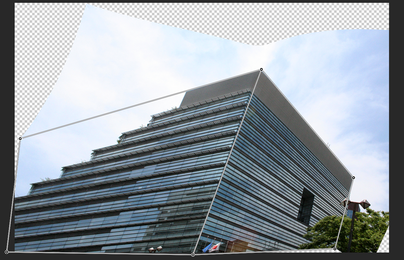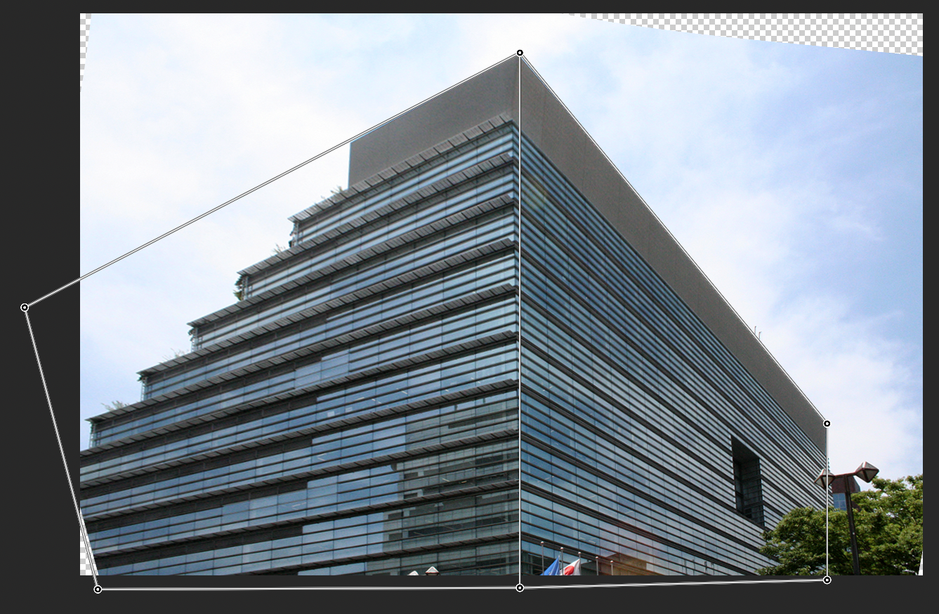 Option+Shiftキーを押しながら四隅のポイントをドラッグすると、遠近法のような変形も可能です(図15)(図16)。