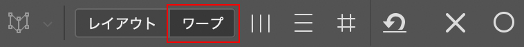 オプションバーのワープをクリックし(図5)、ワープモードに切り替えたら、変形させたい部分のピンをドラッグすると自由な形に対象物を歪ませる(ワープさせる)ことができます(図6)。