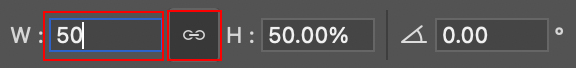 [拡大・縮小]のオプションバーの[W](水平比率)と、[H](垂直比率)の数値を入力して、画像を拡大・縮小することもできます。このときに縦横比を固定のリンクマークにチェックを入れておけば、縦横比を変えずに画像を変形できます(図8)(図9)(図10)(図11)。