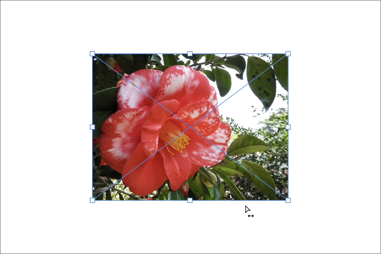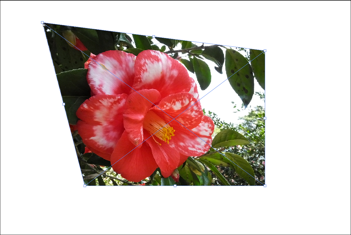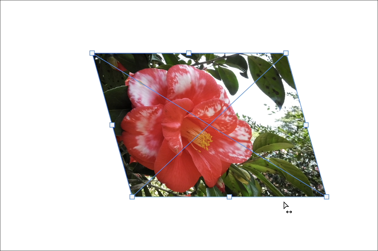 バウンディングボックスのやや外側でCommandキーを押すと白の矢印に両矢印の付いたアイコンに切り替わるので、この状態でドラッグするとゆがみの補正をすることができます(図7)(図8)。