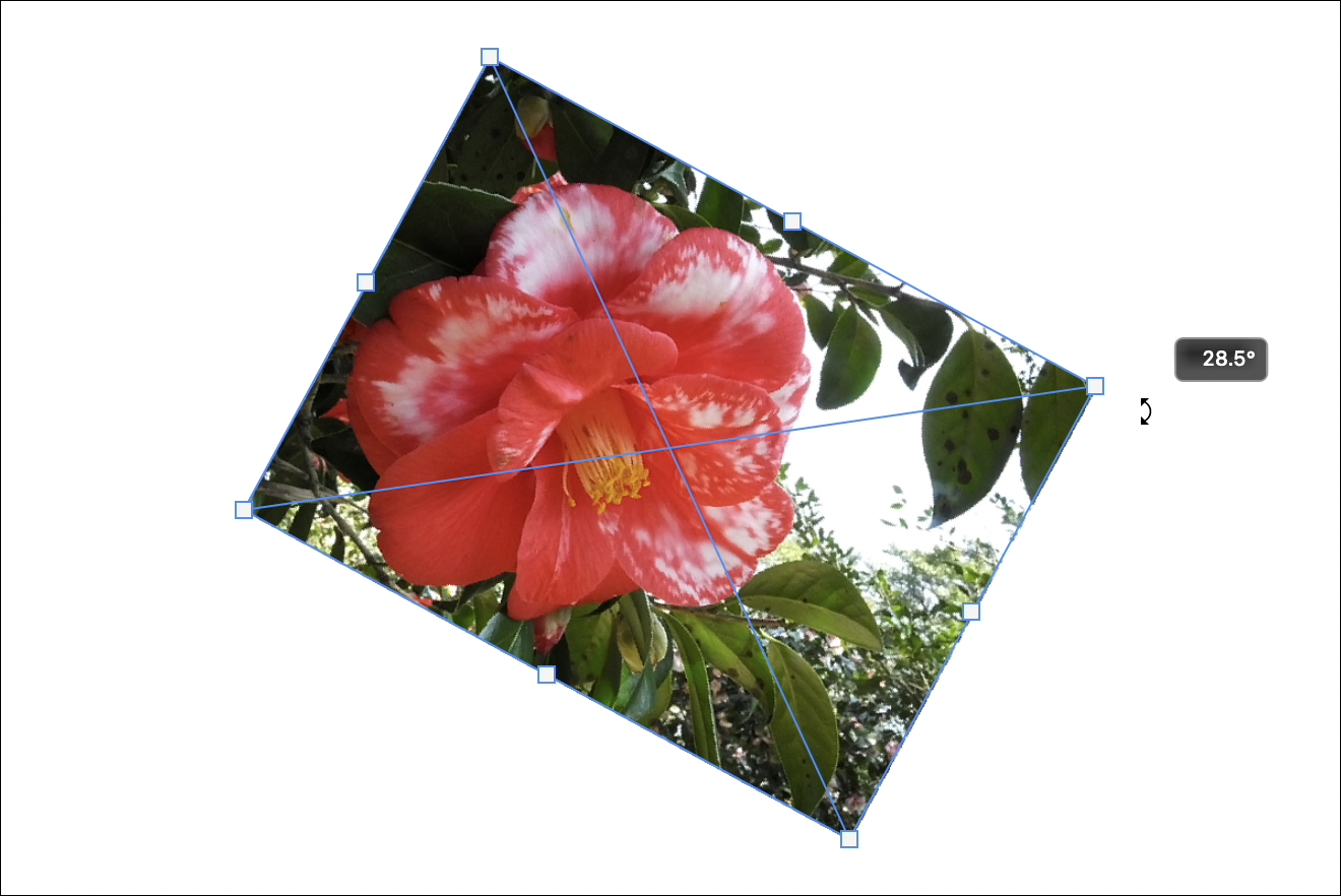 バウンディングボックスのやや外側にポインターを合わせると円弧の矢印のアイコンに切り替わるので、この状態でドラッグすると画像を回転できます(図5)。
