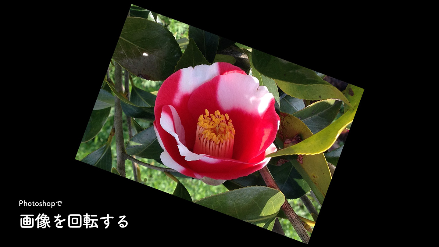 Photoshopで画像を回転する(画像の変形)方法を説明します。「変形」の「回転」機能、または「自由変形」を使うことで簡単に画像を回転させることができます。