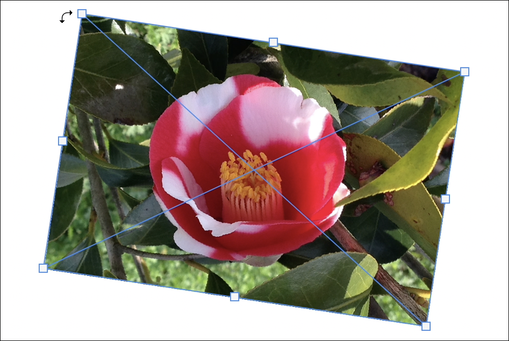 続いて、編集メニュー→“変形”→“回転”を選択。バウンディングボックスが表示されるので、ポインターをバウンディングボックスの外側に合わせると、円弧の矢印に切り替わるので(図2)、この状態でドラッグすると画像を回転することができます(図3)。