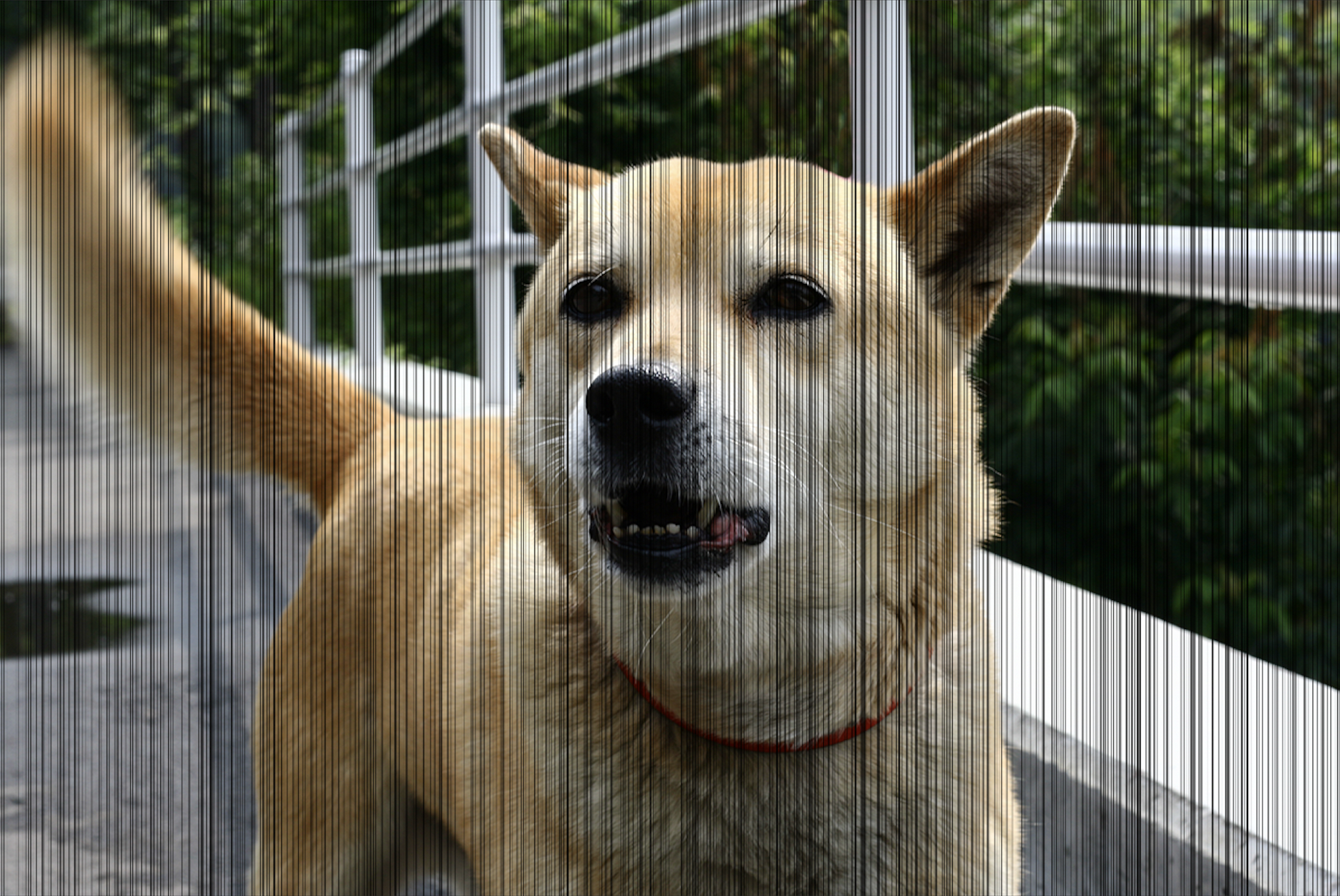 次にフィルターメニュー→“その他”→“スクロール...”を選択し、[水平方向:0]、[垂直方向:+1600](最大値)、[端のピクセルを繰り返して埋める]にチェックを入れてOKで効果を適用します(図6)(図7)。画像のノイズが縦の黒線に変化しました。