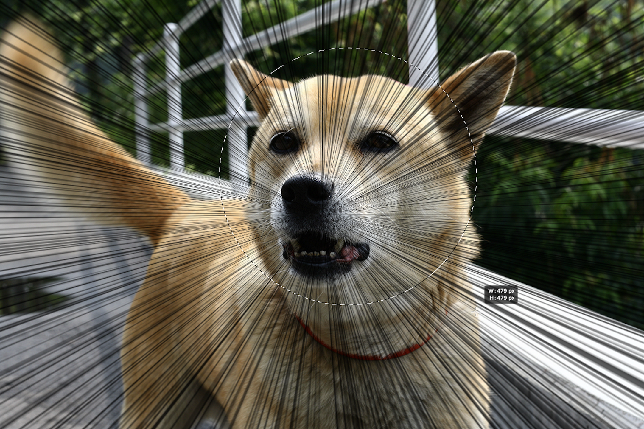 画像上をドラッグして集中線の中心の周りの選択範囲を作成します(図11)。ドラッグ中にSpaceキーを押したままにすると、選択範囲の始点の位置をずらすことができるので、選択範囲の位置決めの際は便利です。