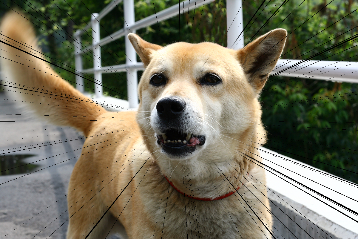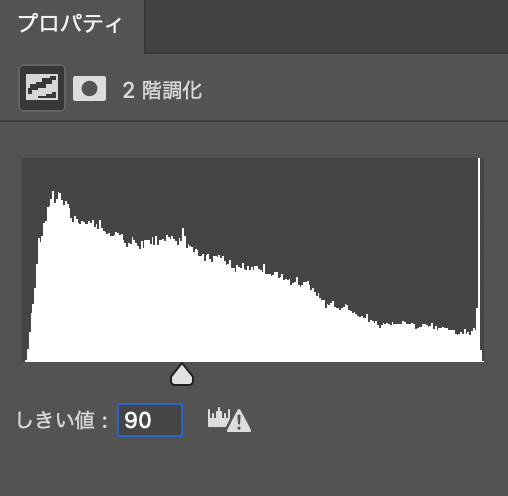 2階調化のプロパティパネルの設定で、しきい値のスライダーを左にスライドすると放射線の本数が少なくなり(図15)(図16)、右にスライドすると放射線の本数が多くなります(図17)(図18)。