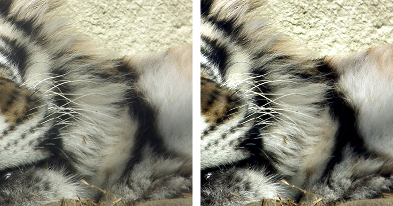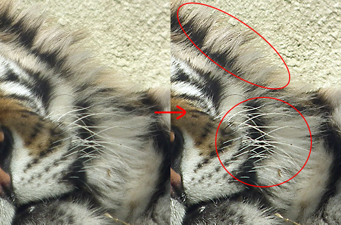 元画像と完成画像の比較(図7)。毛先などのエッジがシャープになっていることが確認できます。