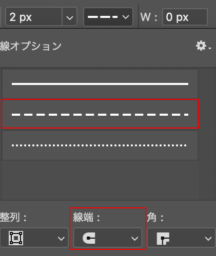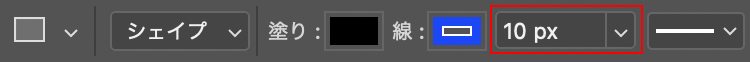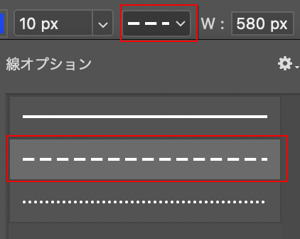枠線はオプションバーもしくはプロパティパネルで設定します。ここではオプションバーで[線]を選択して、カラーを設定します。