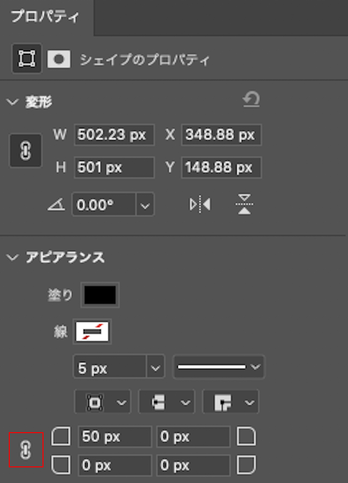 角丸の半径値のリンクを外すと、部分的に角丸設定も可能です(図15)(図16)。