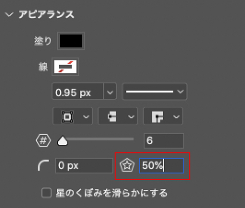 [星のくぼみを滑らかにする]にチェックを入れると、くぼみが丸く変形される(図25)。