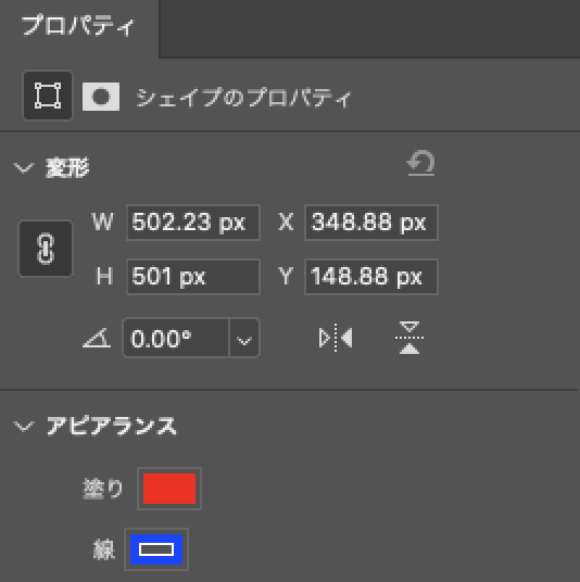 プロパティパネルを開き(パネルがない場合はウィンドウメニュー→“プロパティ”で表示)、[アピアランス]の[塗り]と[線]で図形の色と図形の枠線の色を指定できます(図11)(図12)。