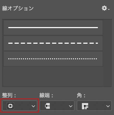 [線の種類]ではシェイプの線の種類や(図10)(図11)、[整列]で整列のタイプ(線の外側か、中心か、内側か)など細かな設定が可能です(図12)(図13)(図14)(図15)。