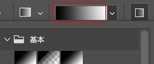 Photoshopで新規ファイルを開いたら、グラデーションツールを選択し(図1)、オプションバーでグラデーションを設定します(図2)。なお、図2は描画色から背景色にグラデーションしている状態です。