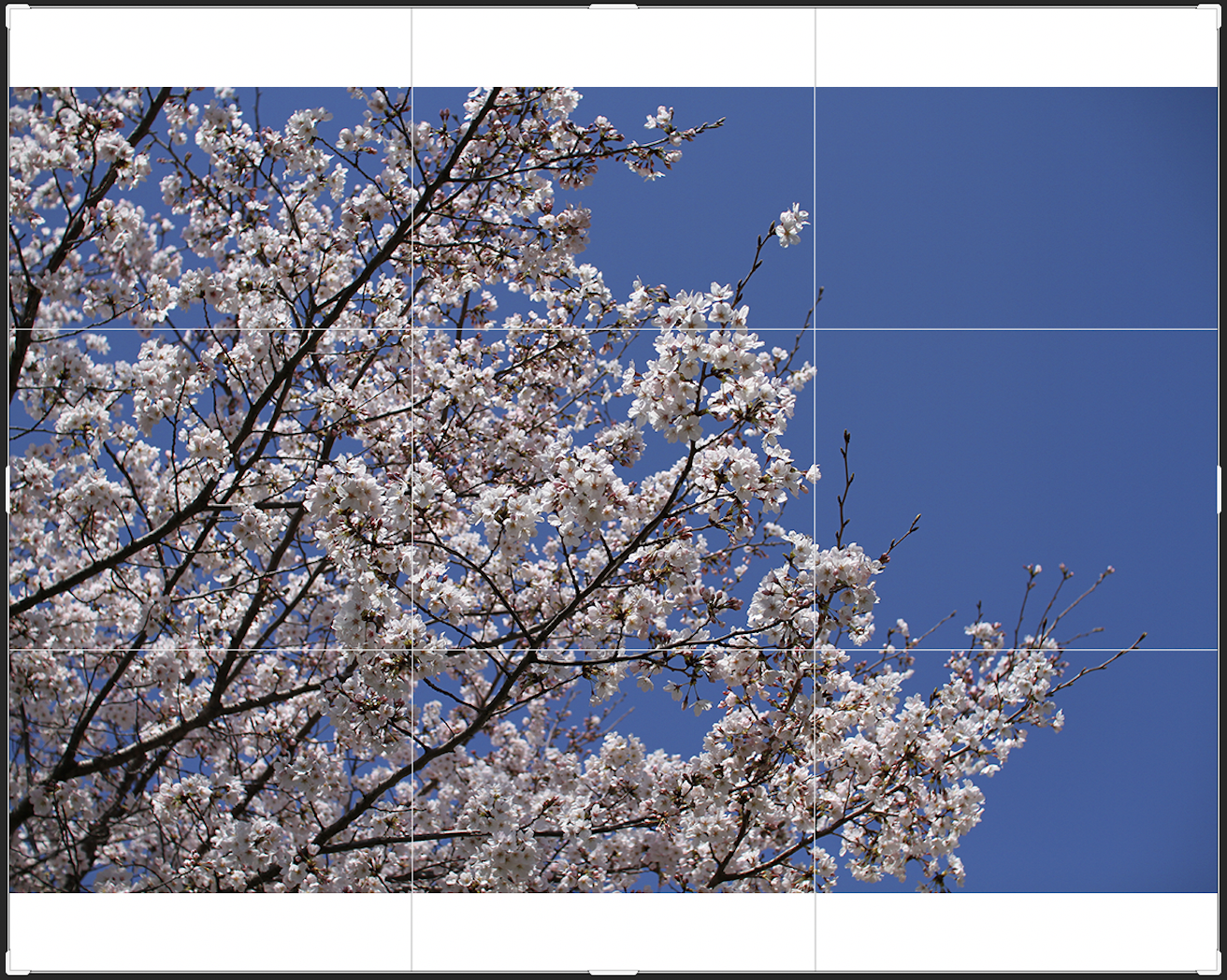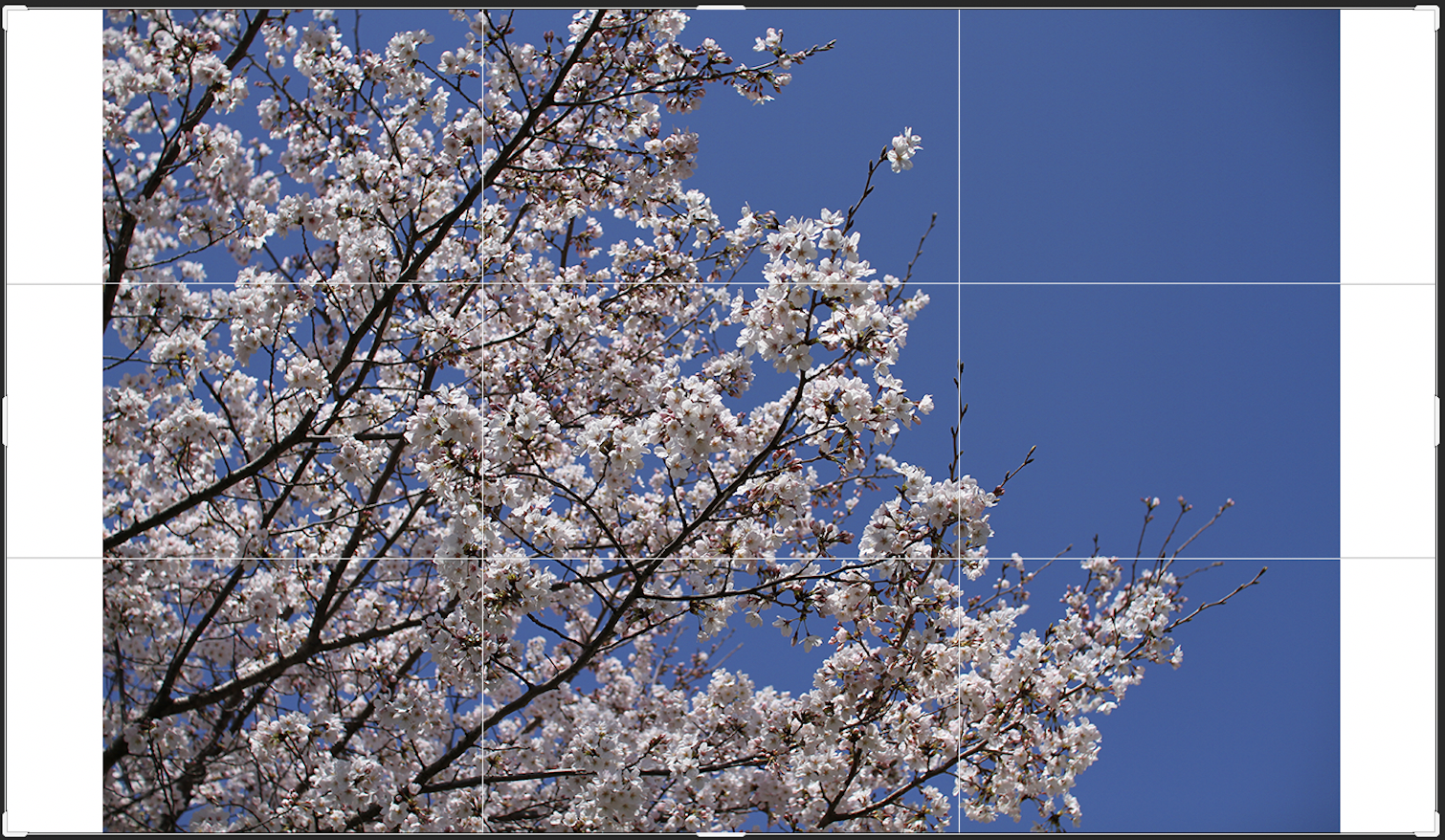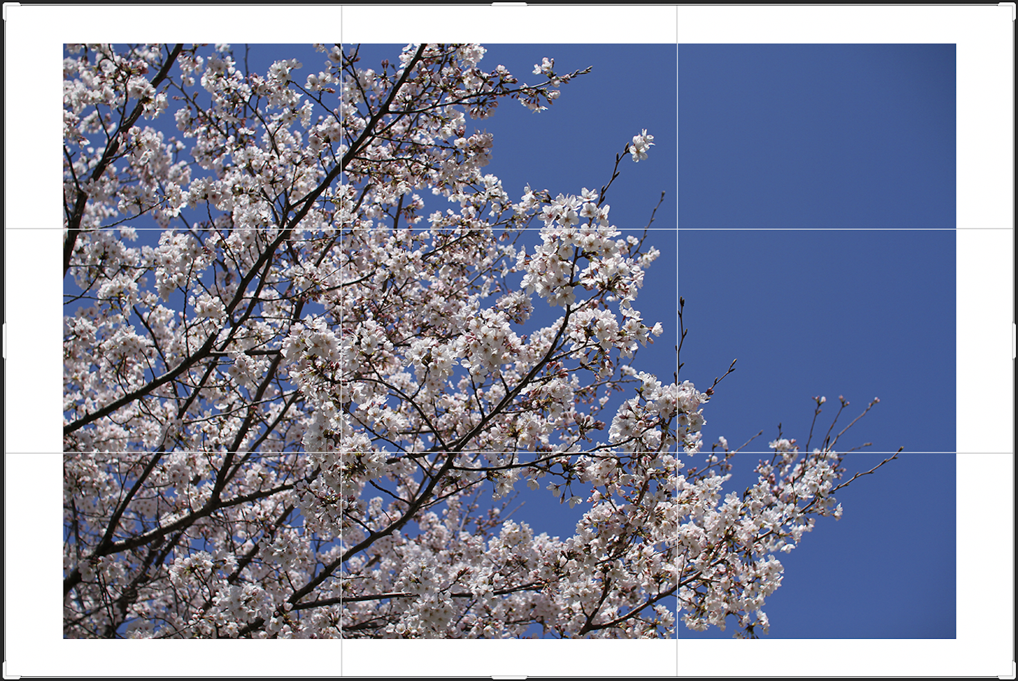 切り抜きツールを使用してカンバスサイズを変更することもできます。切り抜きツールを選択すると(図8)、切り抜きボックスが表示されるので、このボックスをドラックして切り抜きたい形にして(図9)、上部右端の「◯」ボタンもしくはReturnキー(WinはEnterキー)を押せば任意のカンバスサイズに変更できます(図10)。