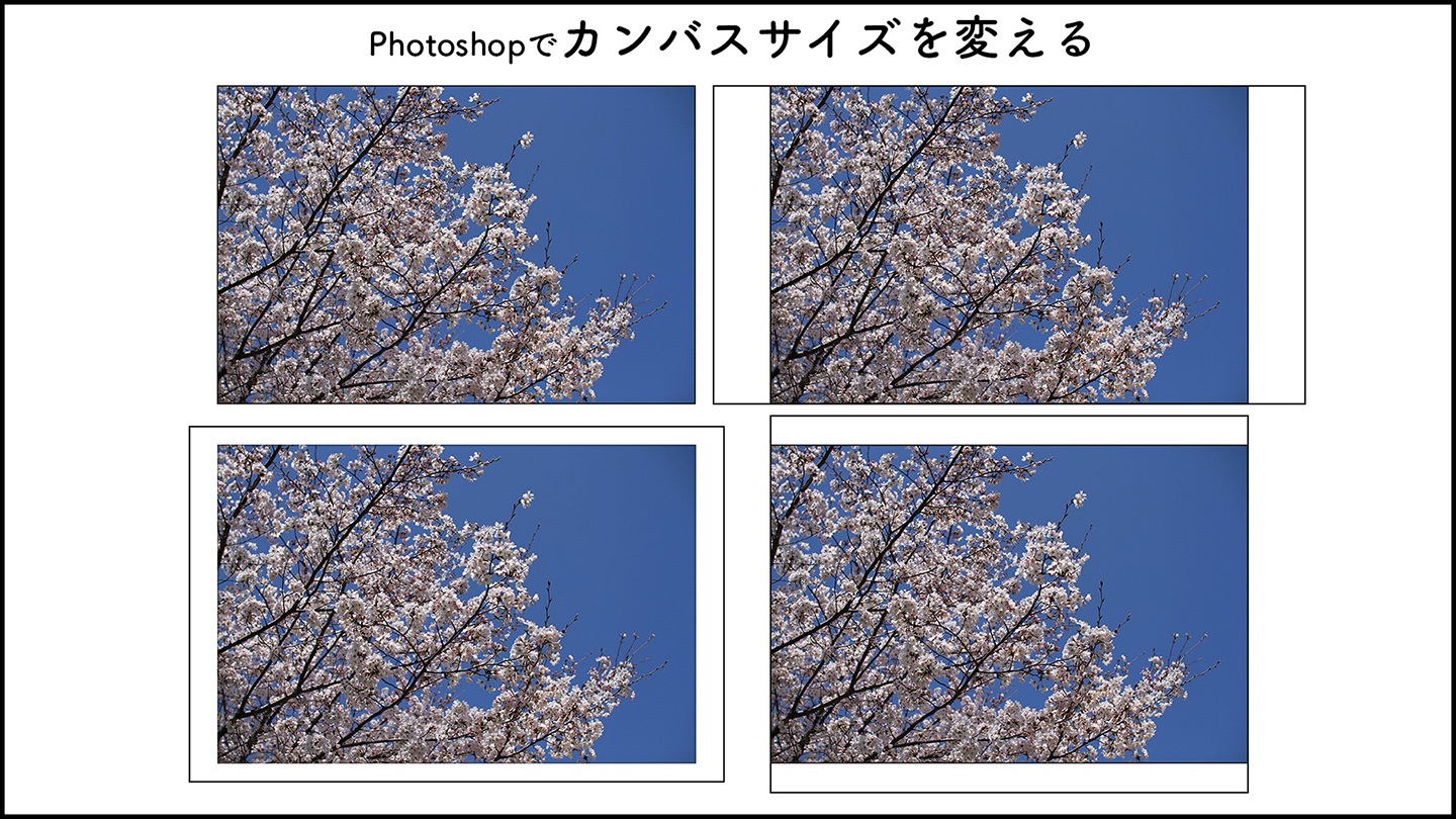 Photoshopで作業途中にカンバスサイズ(画像の編集領域)を広げたい場合など、新規ファイルを開いた後にカンバスサイズを変更する方法を説明します。「カンバスサイズ」(数値入力)、「切り抜きツール」(感覚的)の2つの方法を紹介。
