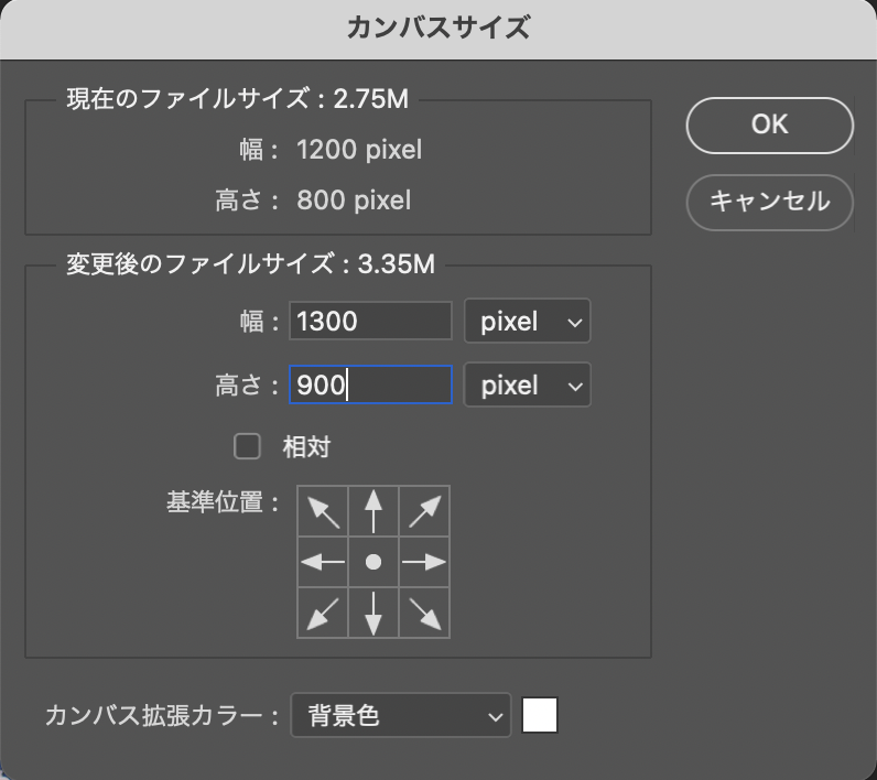 以上、Photoshopでカンバスサイズを変える方法でした。