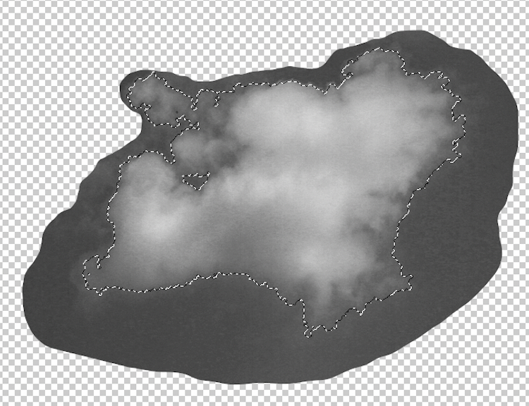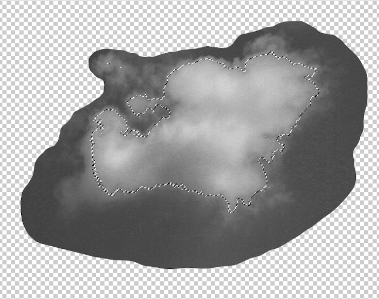 次にレイヤーパネルで雲のレイヤーのレイヤーサムネール上をCommandキーを押しながらクリックして雲の部分だけの選択範囲を作成し(図29)、編集メニュー→“ブラシを定義...”を選択してブラシ名をつけて、作成したブラシを登録しました。