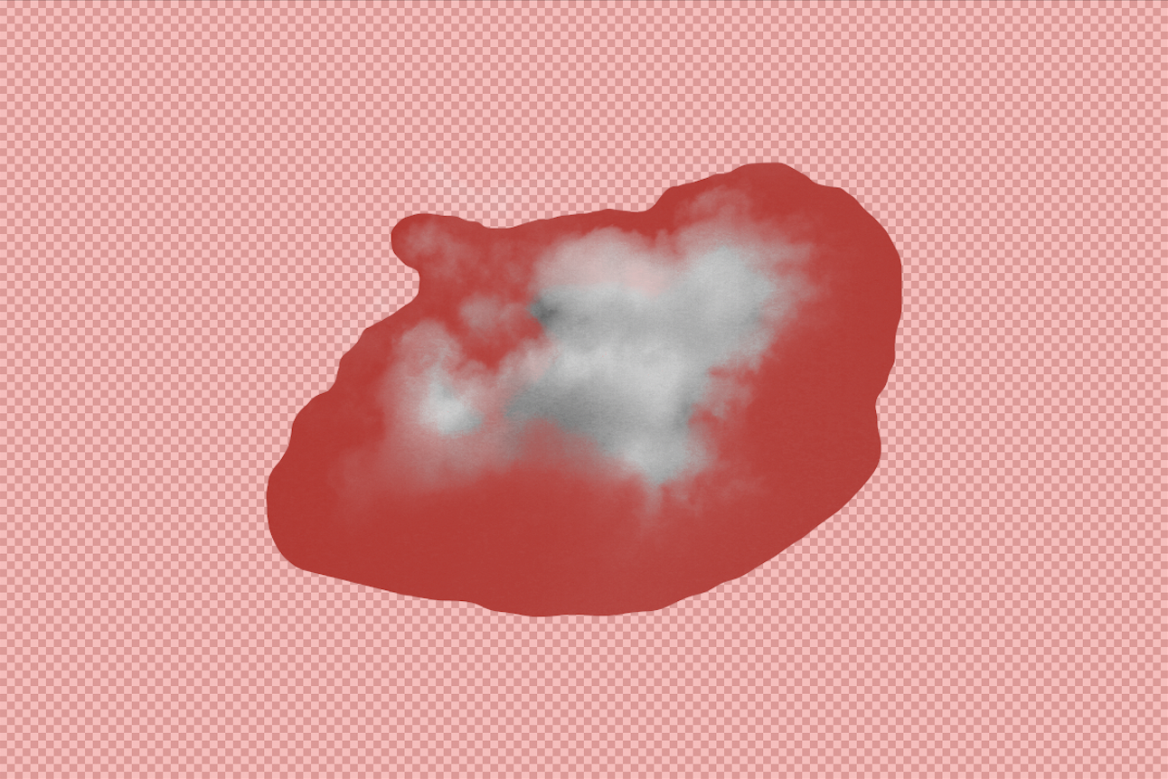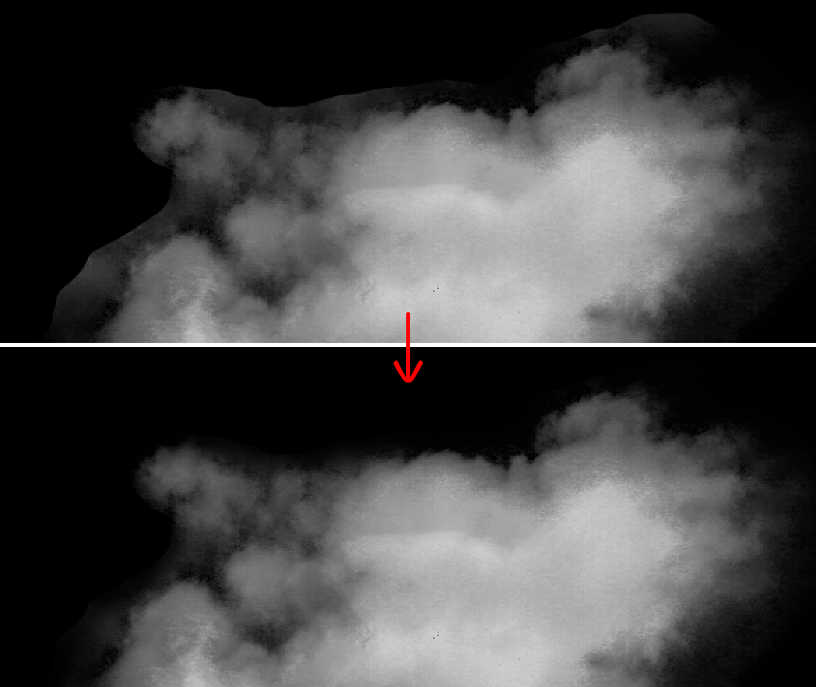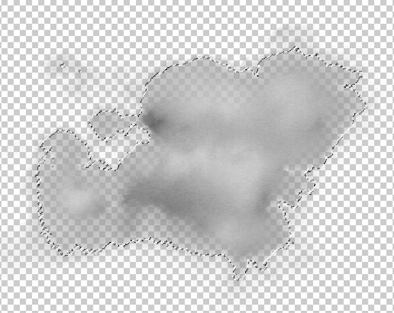 この雲の素材をブラシとして登録します。この時、余分な部分が含まれている場合はブラシを登録する前に修正します。ここでは、不要な部分を見やすくするため、一旦背景を黒で塗りつぶし、雲の周りの縁が目立っていたので、消しゴムツールなどで消去しました(図28)。
