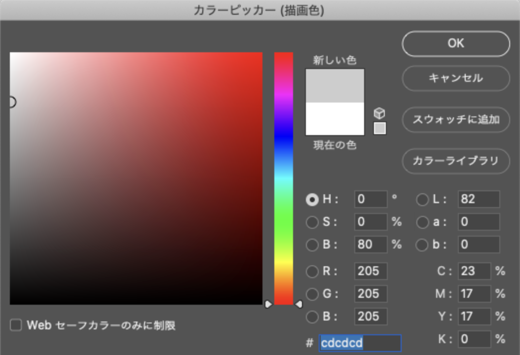 最後にツールパネルで描画色を薄いグレーに設定し(図12)、雲を作成した同様の手順で、雲の影を演出して完成としました(図13)(図14)(図15)。影が濃い場合は描画色を調整するか、不透明度を調整しましょう。