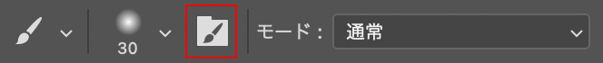 ブラシパネルからブラシを追加することもできます。まずはブラシツールを選択して、オプションバーの[ブラシ設定パネル]をクリックします(図4)。