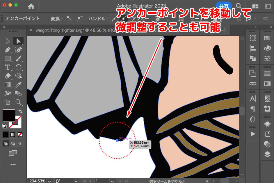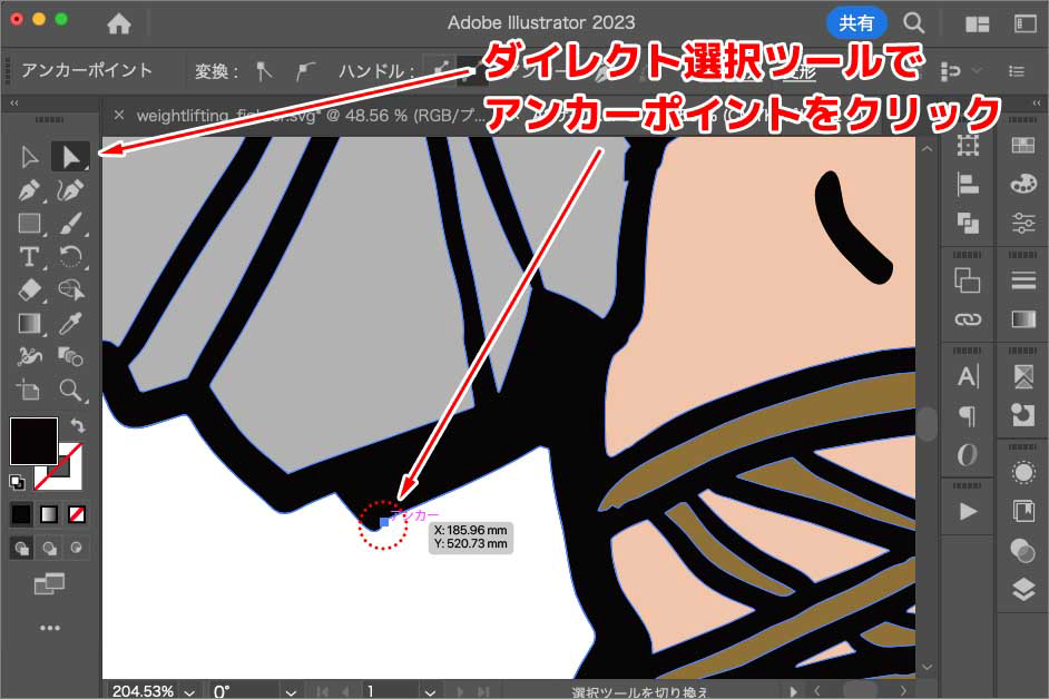 5)ダイレクト選択ツールでベクター画像を微調整する