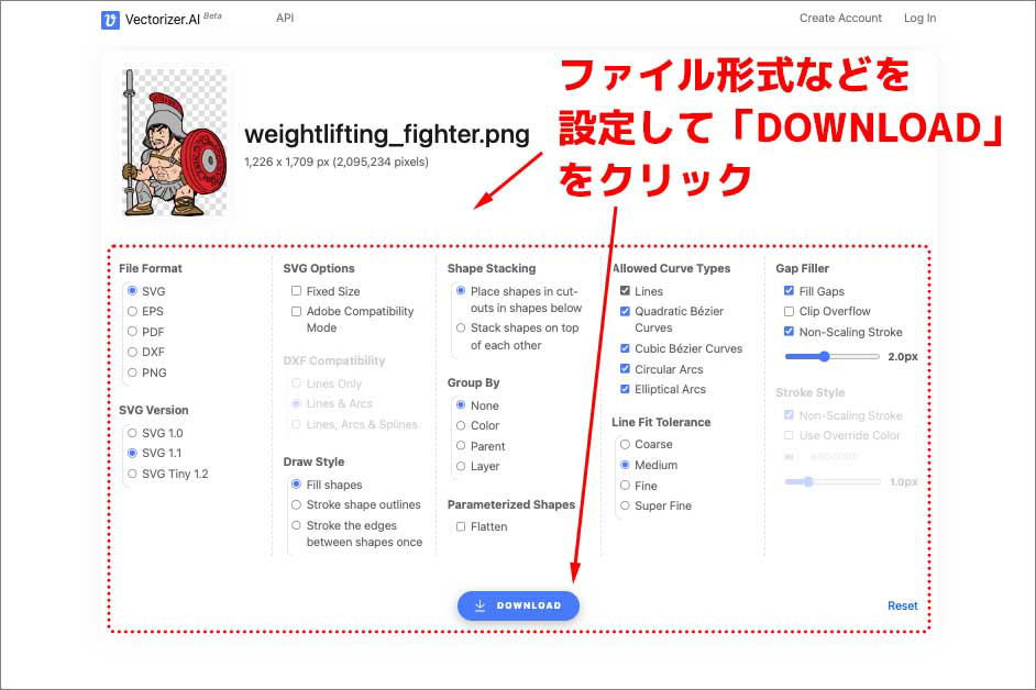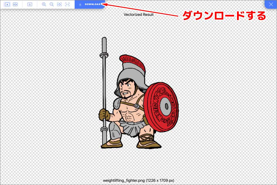 ベクター化された画像を確認し問題がなかったら「DOWNLOAD」ボタンをクリックします。