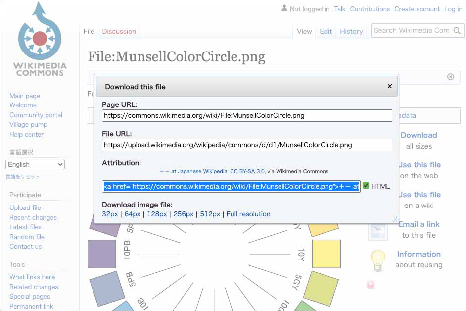 Wikipediaに使われている画像など、CCライセンスを選択する際に表示されるHTMLコードを表示させることでも、CCライセンスを付与できます。