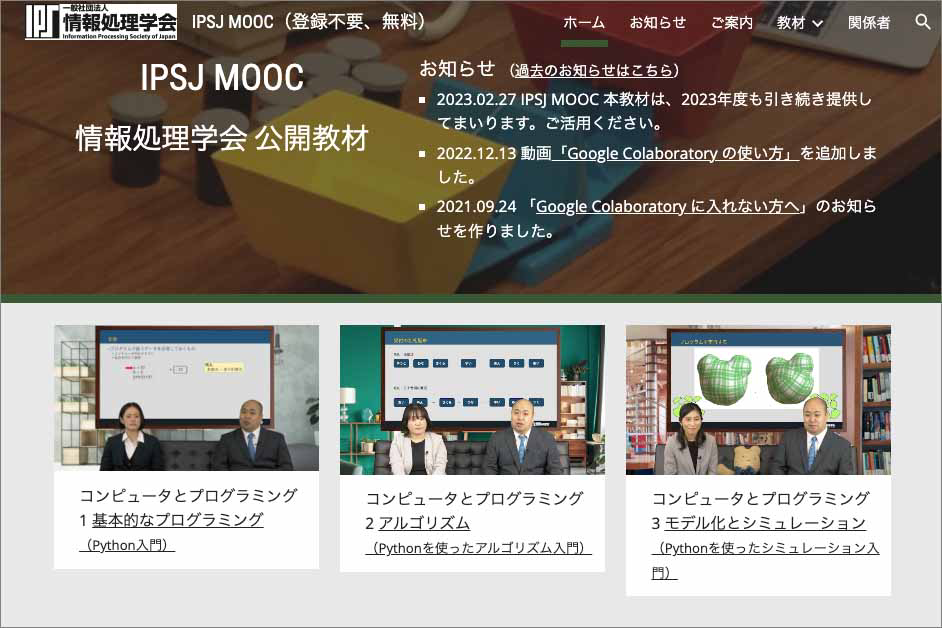 例えば、情報処理学会は高等学校「情報I」に関する教材を、CCライセンス(CC BY-NC-SA 4.0)にて無償で公開しています。