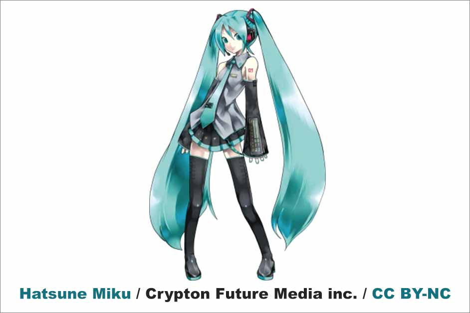 こうした素材提供の成功事例は数多くあります。例えば、CCライセンスの使用されている代表的な作品の一つに、クリプトン・フューチャー・メディア社が提供する人気キャラクター「初音ミク」があります。「初音ミク」はCC-BY-NCでライセンスが付与されています。さまざまなコンテンツに「初音ミク」が登場しているのは周知のとおりです。