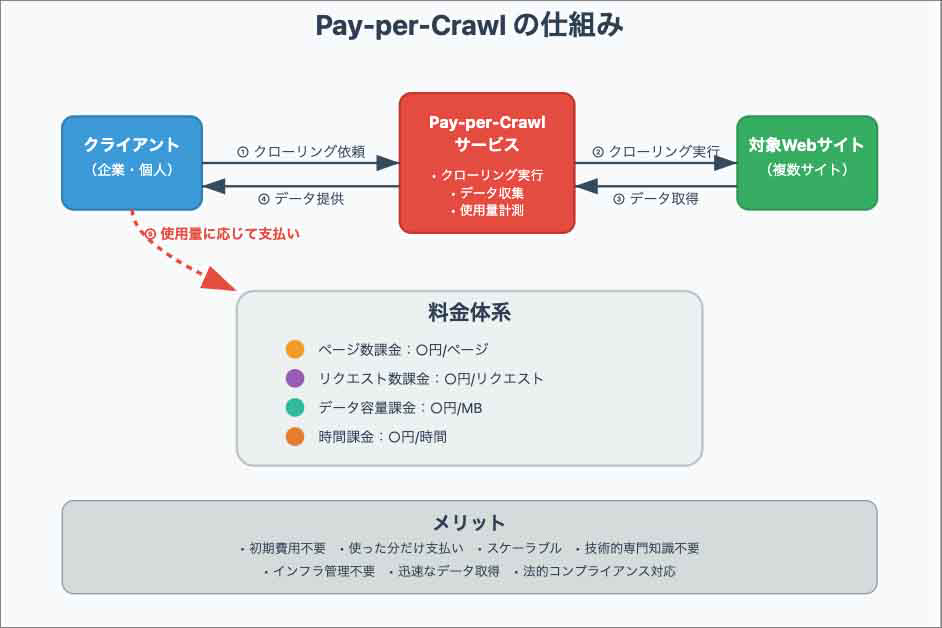「Pay Per Crawl(略してPPC)」は、その名の通り「クロールした分だけ課金される」新しい仕組みです。このモデルは、必要な範囲に限定してデータを収集できる柔軟性から注目を集めています。