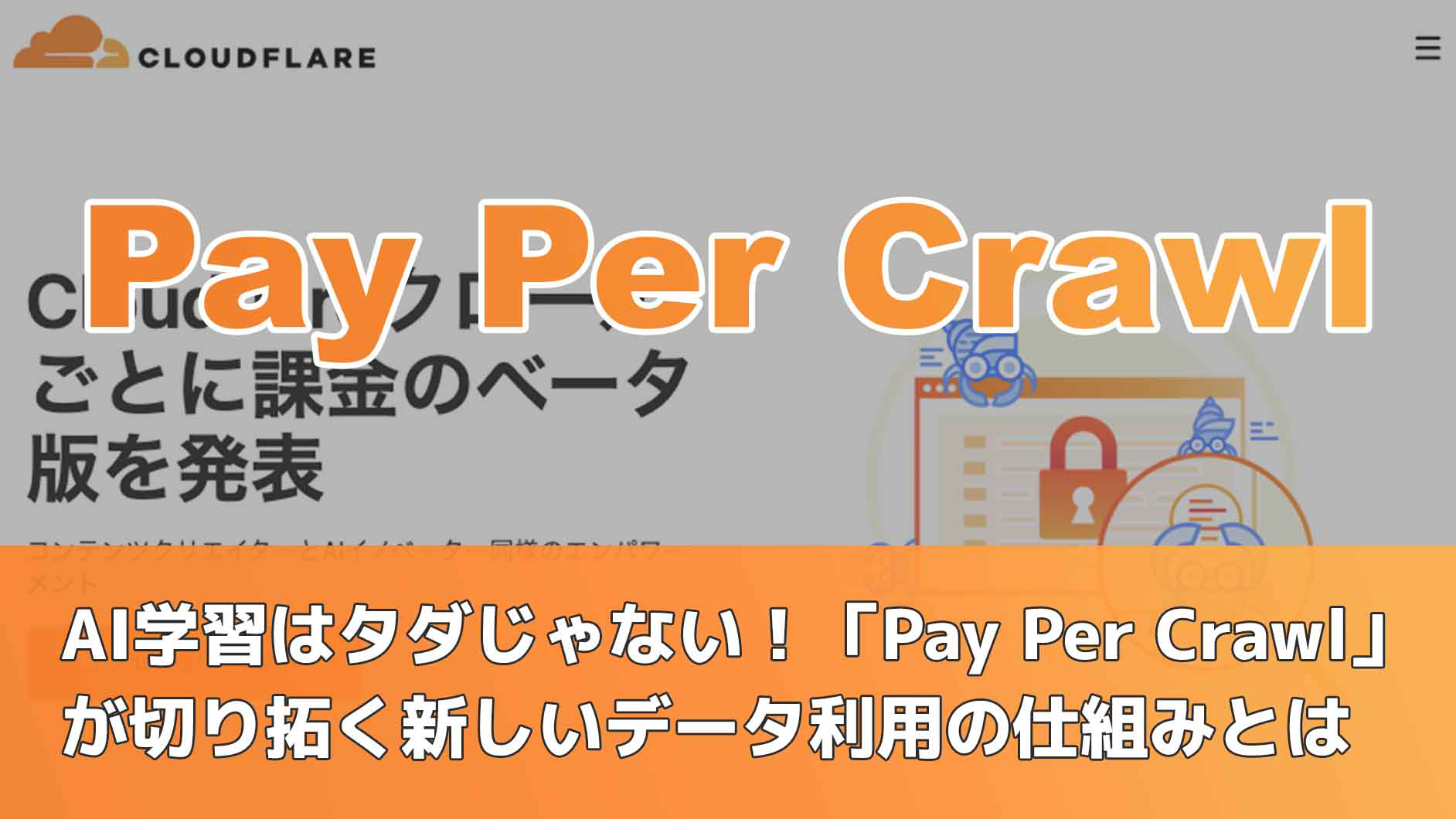 また、大手メディアやエンターテイメント企業などをはじめとして、法的な措置に乗り出すコンテンツ提供者が増えてきています。こうした一連の動きの中で、インターネット上にあるデータ収集そのものを改革しようといった動向も出てきています。そうした考えを支える技術として「Pay Per Crawl」という課金システムが注目されています。