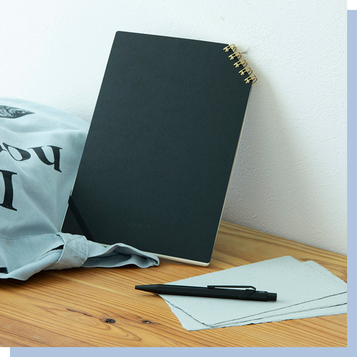右角をゴールドのワイヤーで斜めに留めたミニマルなデザインのリングノート。縦横どっちに使ってもリングが手に当たらず書きやすく、ページもめくりやすいなど、スマートな使い心地に感激。1辺がゴムでホールドされ、バラバラにならない配慮も素晴らしい(ライターN)/1200円(税別) 問い合わせ:03-5411-1696(PAPIER LABO.) 公式サイト