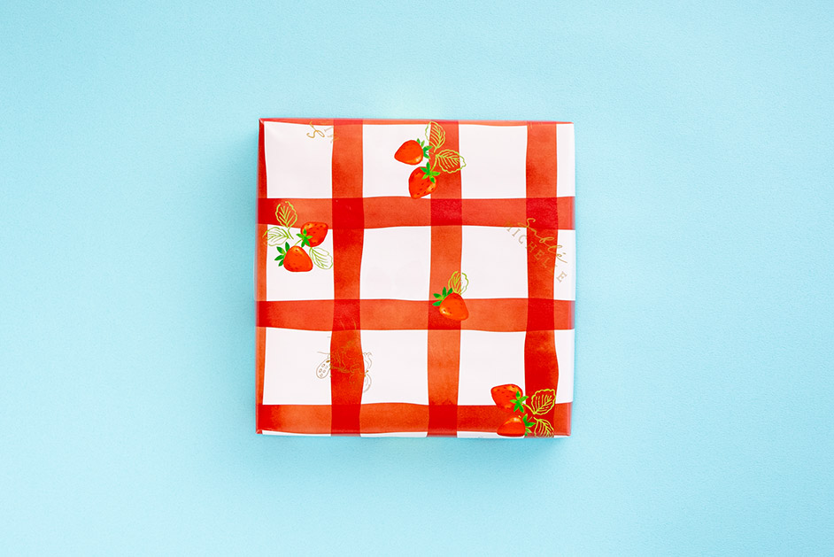 ホワイトチョコレートでコーディングしたサブレにフリーズドライのイチゴをトッピングした、まるでショートケーキなサブレが現れます。その下にはバターとイチゴの型抜きサブレ。おめでたい席への差し入れや、誕生日プレゼントにもなる東京土産に。