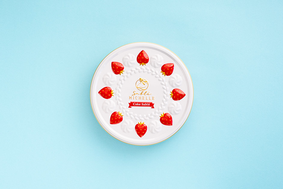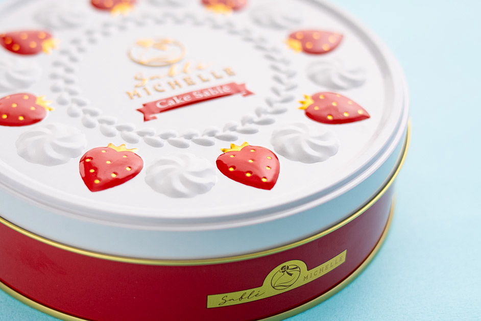 ショートケーキがモチーフのメルヘンチックなサブレ缶