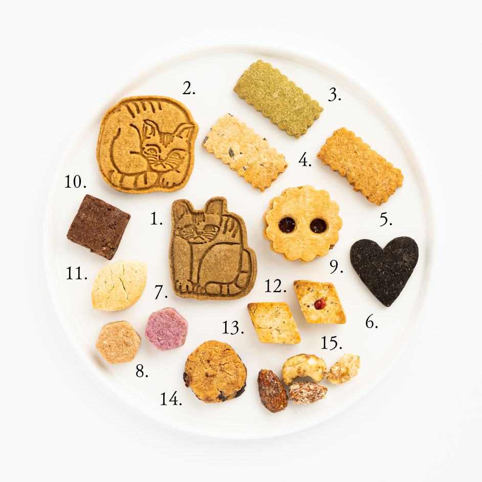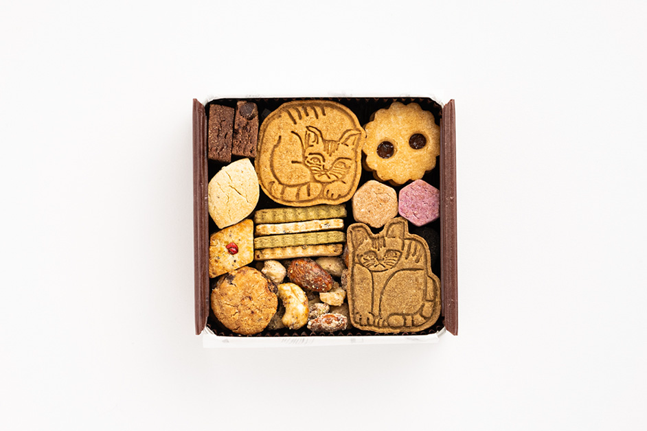 | 内容 | 猫サブレ(コーヒー) 猫サブレ(ほうじ茶) 緑茶サブレ ラベンダーサブレ ココナッツサブレ ブラックサブレ 紫芋サブレ シナモンサブレ ジャムサンドクッキー チョコチップと山椒のカカオニブクッキー 有機カルダモンとレモンのクッキー 酒粕サブレ(ピンクペッパー 酒粕サブレ(有機ローズマリー) チョコナッツボール ミックスナッツ 計15種(種類の数、内容は変更の場合あり) |