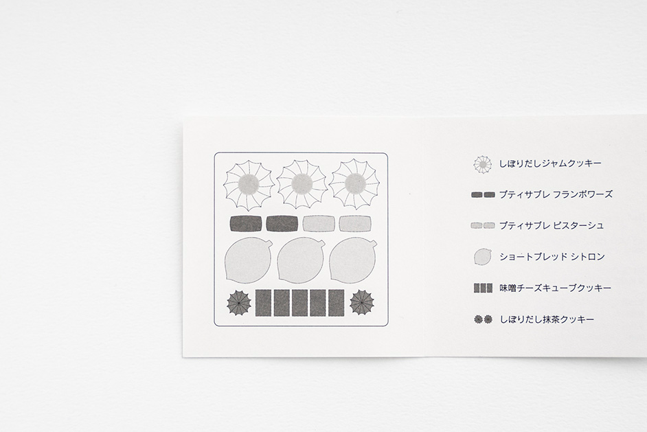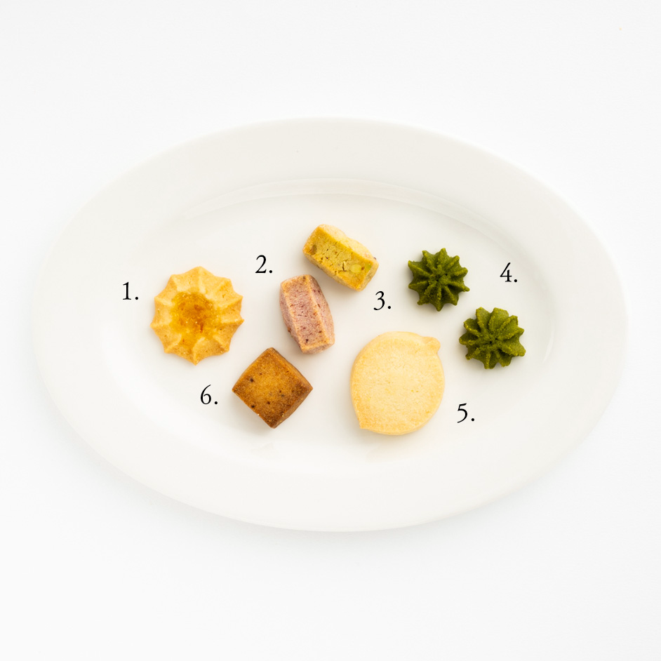 | 内容 | しぼりだしジャムクッキー9個 プティサブレ フランボワーズ4個 プティサブレ ピスターシュ4個 ショートブレッド シトロン6個 しぼりだし抹茶クッキー4個 味噌チーズキューブクッキー5個 計6種 ※内容は変更の場合あり |