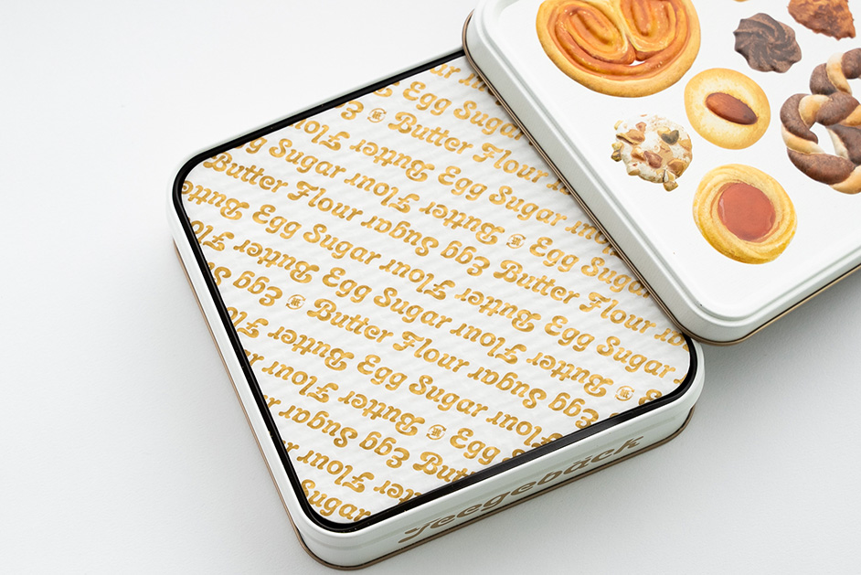 MdNの編集Y「レトロで懐かしさいっぱいのテーゲベック。ぷっくりエンボス加工された缶パッケージで、ずっと眺めていたくなるほどのかわいさです。スリーブにはビスケットのシルエット、蓋を開ければ缶にデザインされたビスケットと同じものが並んでいて、なぜだかその光景にキュンとしてしまうのです。ちなみに、ビスケットを覆っているシートには、お菓子の基本材料が印写されていて、デザインはユーハイムのオリジナルなのだそう。細部にまでこだわっていて、お菓子への愛を感じます」
