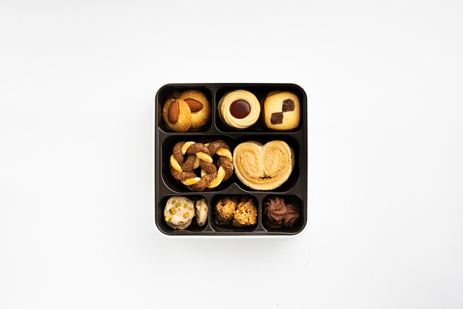そんな老舗のバウムクーヘンと並ぶロングセラーが、ビスケットを詰め合わせた「テーゲベック」。ドイツのお茶菓子をルーツにした手作りのビスケットは、バターの風味豊かなものから、アーモンド、ジャム、パイ生地、メレンゲタイプまで、見た目も違えば味わいも食感もさまざま。サクサクしていて、食べやすく、ほどよい甘さ。素朴なおいしさに頬がゆるみます。