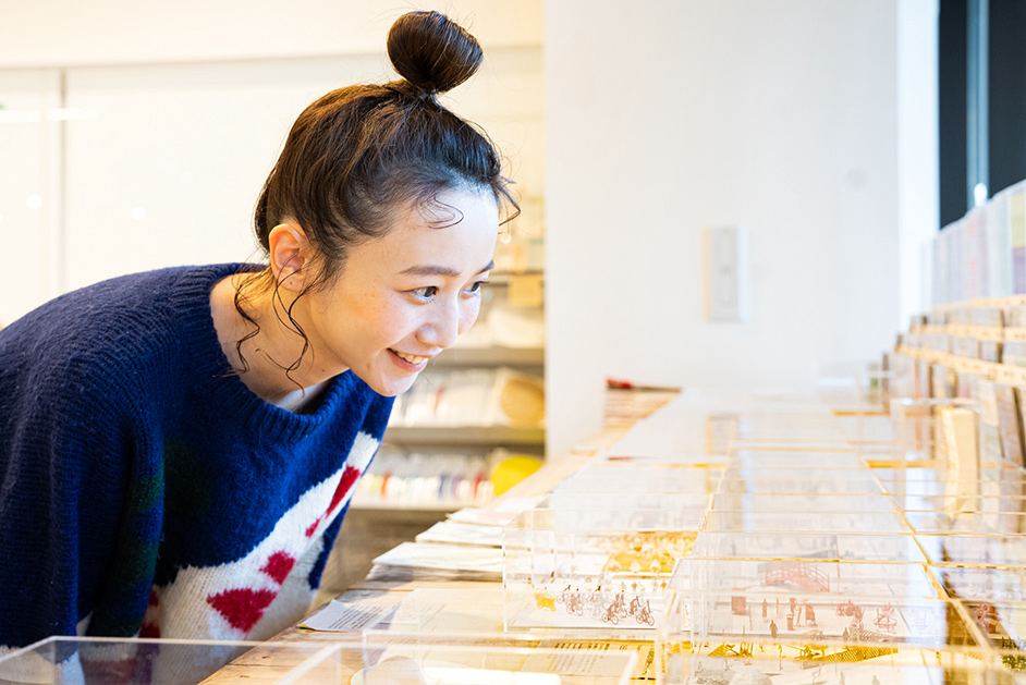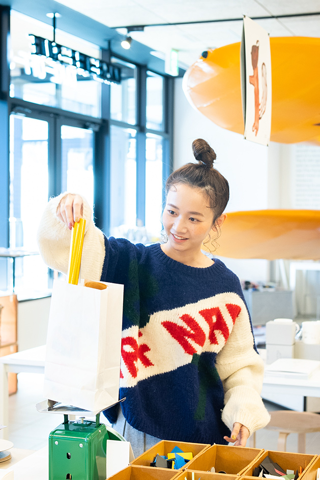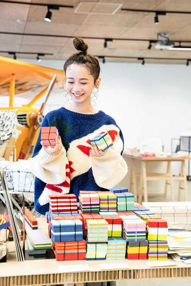 「紙製品ってこんなにたくさんあるんですね!大人が楽しめる文房具が多く、インテリな雰囲気に遊び心を感じてワクワクします」。この日は三戸さんも気になるアイテムをじっくり吟味してお買い上げ。知的好奇心をくすぐるTAKEOFF-SITEで、皆さんもぜひ紙のおもしろさを体感してみてください!