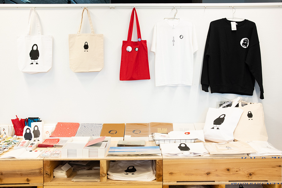 バッジのみならず、クリアファイルやシール、鉛筆、メッセージカード、さらに刺繍入りのタオルパーカーなどのアパレルアイテムも展開されていて、ファンなら一度は足を運びたいスポットです。
