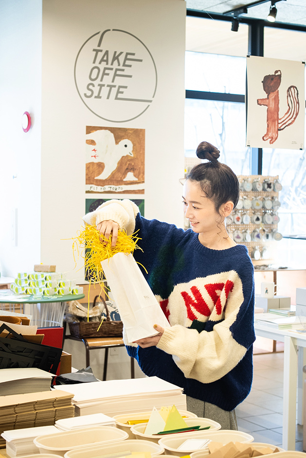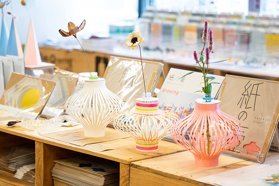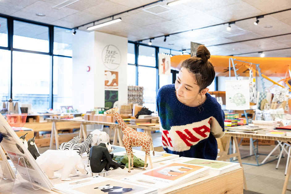 東京・立川を拠点に、紙の加工業を営む「福永紙工」が企画・委託運営するTAKEOFF-SITE。クリエイティブなものづくりに取り組む企業の製品や、アーティストの作品を扱うセレクトショップです。デザイナーや作家との共同開発にも取り組み、500種類以上のオリジナルペーパーアイテムが並びます。