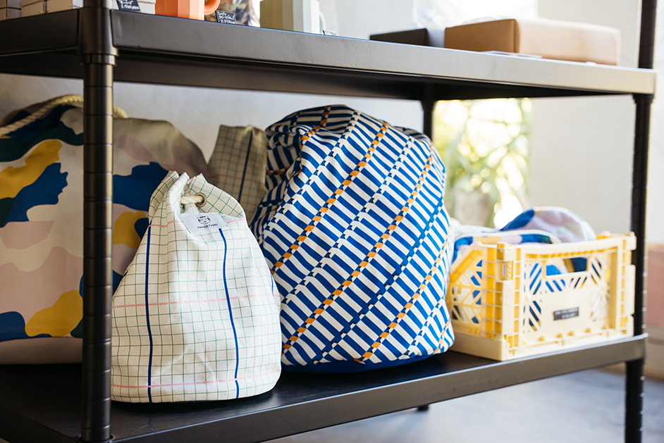 プリント生地だけを購入することも可能なので、自分だけのオリジナルアイテムを作ってみるのもおすすめです。店内にはバッグなどの制作見本もディスプレイされていますよ。
