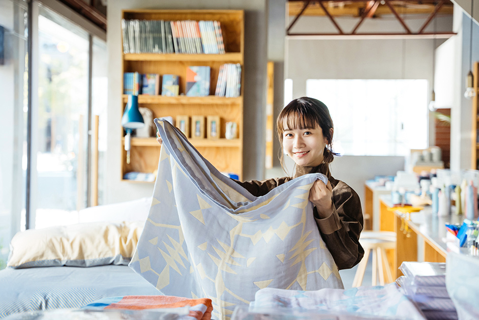 取材時は老舗寝具メーカーの「昭和西川」とのコラボレーションアイテムとしてブランケットや掛け布団カバーが飾られていました。これまでに「シチズン時計」や「ぺんてる」「クオバディス」とのコラボも行なっていたんだそう。ポップアップショップなどのイベントも頻繁に開催しているので、何度もお店に足を運びたくなります。