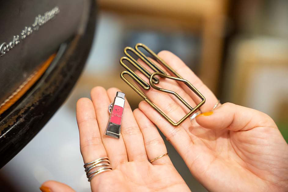店内の商品全てがオリジナルの月光荘。もちろん筆やパレットもこだわりの詰まった名品がそろいます。筆は銀座で職人が一本ずつ手作りしている貴重なもの。豚や馬などの毛を使ったコシの強い筆は、長く使っても絵の具に負けず崩れにくい仕上がりです。持ち手には天然の白木が使われているのだそう。パレットは最も色が正確に見えるとされている「猫柳色」のアルミ製。軽くて丈夫で絵の具が染み込まず、目も疲れにくいという優れもの。
