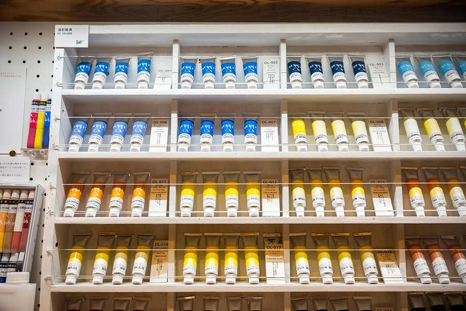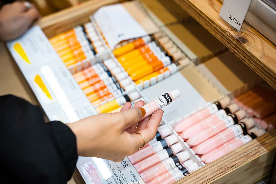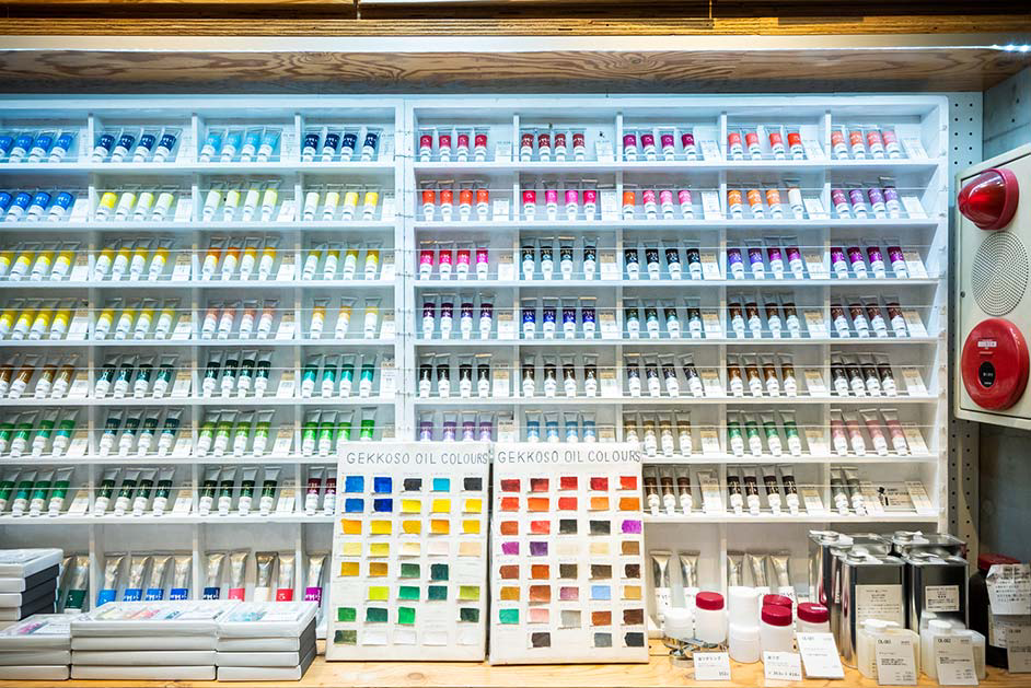 店内にある画材や文房具は全てオリジナルのアイテム。作家たちの要望や想いに応えるようにさまざまな商品を生み出し、その商品から生まれた芸術作品も数多くあるそうです。