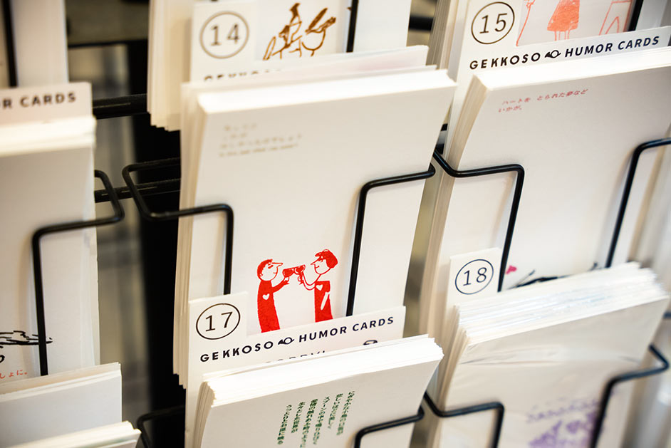 「絵を描かない人でも手紙は書くでしょ」と、便箋やカードなどの手紙アイテムも。「ユーモアカード」にはかわいらしいイラストに心をくすぐるポエムが添えられています。言葉を大切にしていた創業者の橋本さんの想いを感じてみてください。