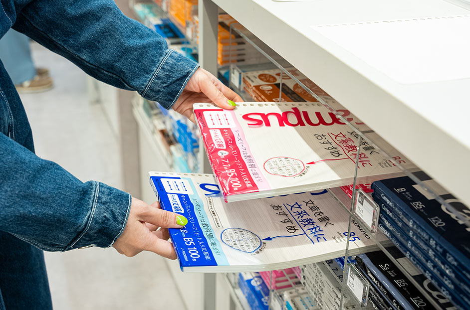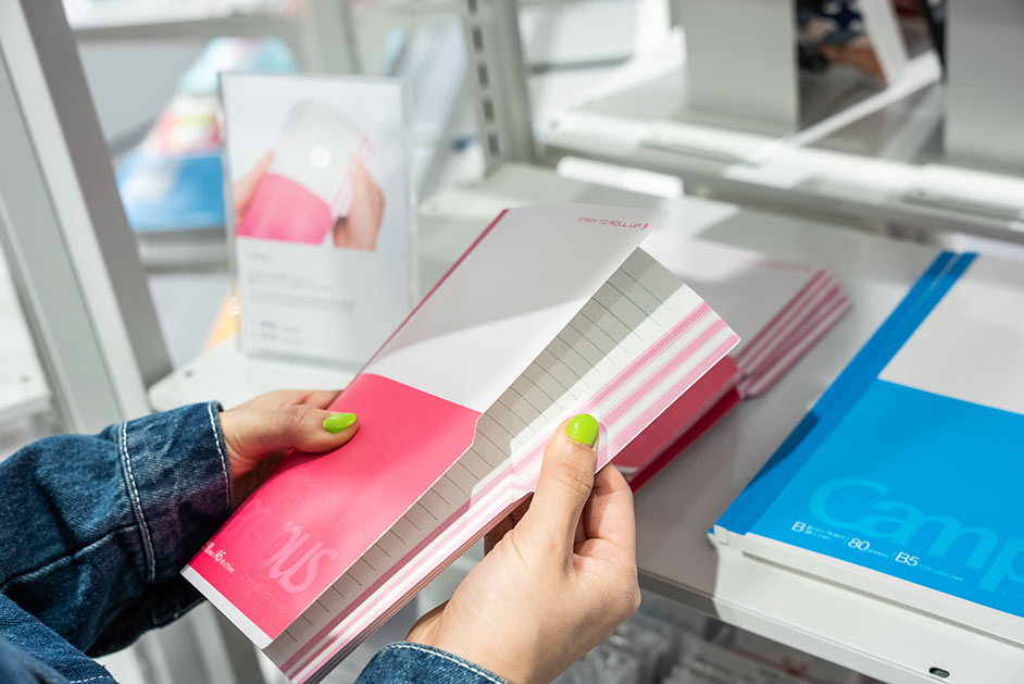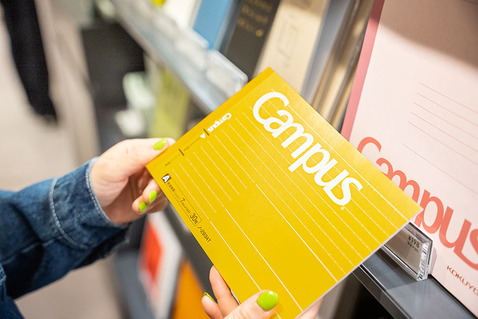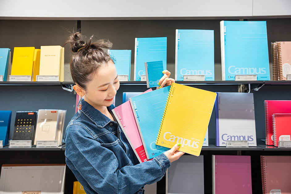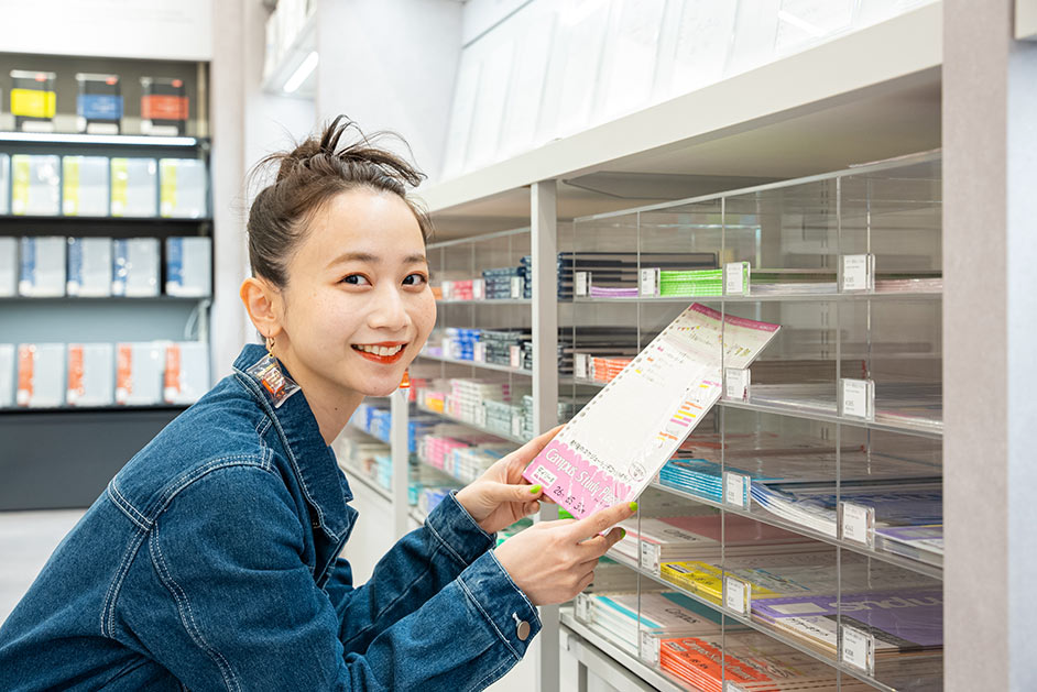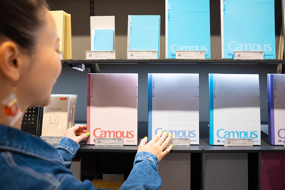 多くのユーザーに愛され続ける「Campus(キャンパス)」シリーズのノートはサイズや種類も豊富。「高校の頃はB罫の方が大人っぽくて、イケてるって認識がありましたね(笑)」と三戸さんも学生時代を振り返っていました。