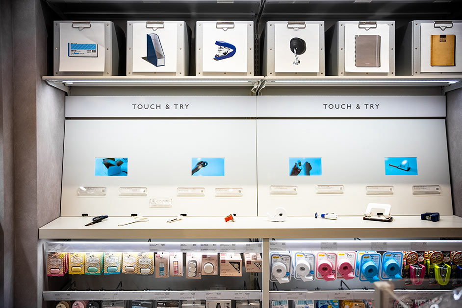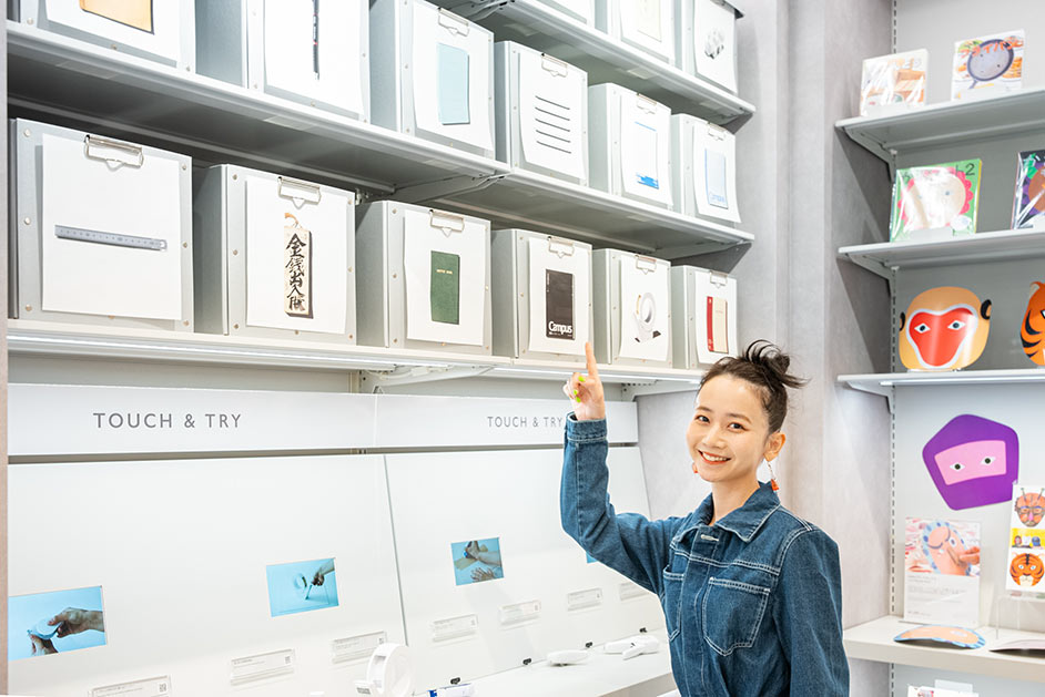 店内にはハサミやのり、ステープラーなど、気になるアイテムを実際に試せる「タッチ&トライ」のコーナーが設置されています。通常の文具店ではなかなか試すことのできないアイテムもたくさんそろっているので、ぜひここで直に触れてお気に入りのアイテムを見つけてみてください。