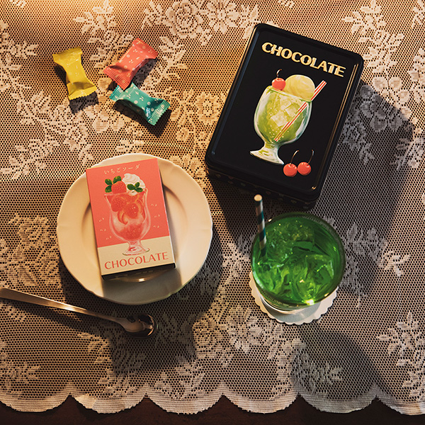 まるで喫茶店のドリンクのようなデザインにときめく、メリーチョコレートのバレンタイン限定新ブランド「はじけるキャンディチョコレート」。パチパチっとギャンディが弾け、どこか懐かしい気分に浸らせてくれる。ぷっくり立体的な加工がかわいい「アソートメント缶」は、コーラフロート、メロンクリームソーダなど、全6種のフレーバー入り。