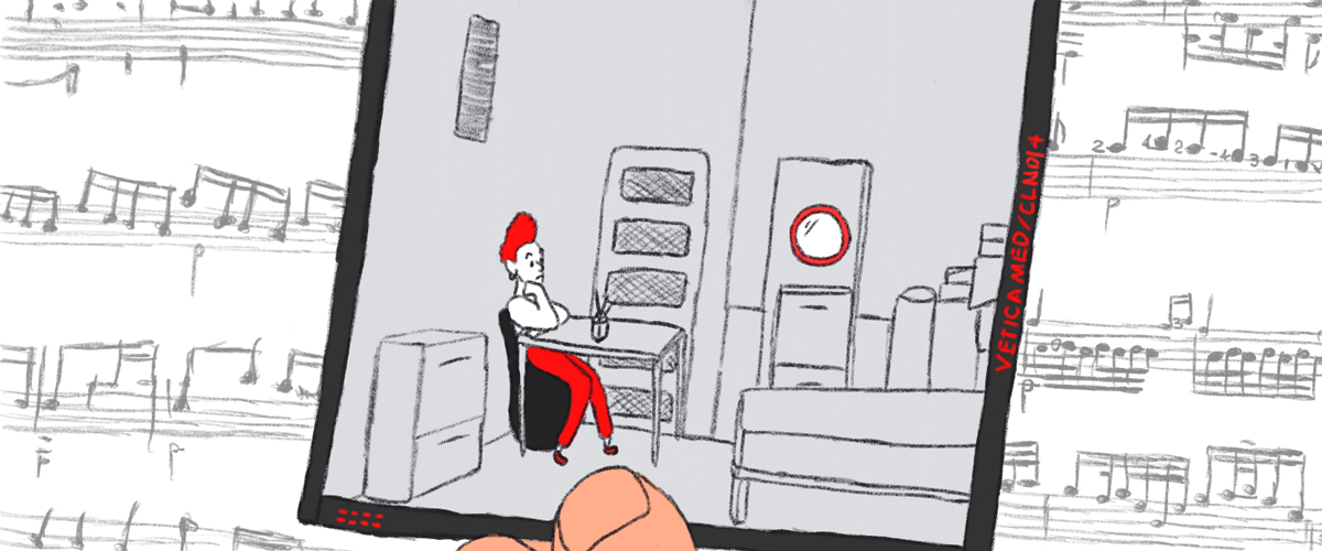 多分、西洋美術史を学んだ人の多くが、この場面を見て、初期フランドル派の画家ヤン・ファン・エイクが1434年に描いた『アルノルフィーニ夫妻の肖像』[*4]を思い浮かべたはずです。なぜなら、この絵の真ん中には、同じような凸面鏡が描かれているからです。
